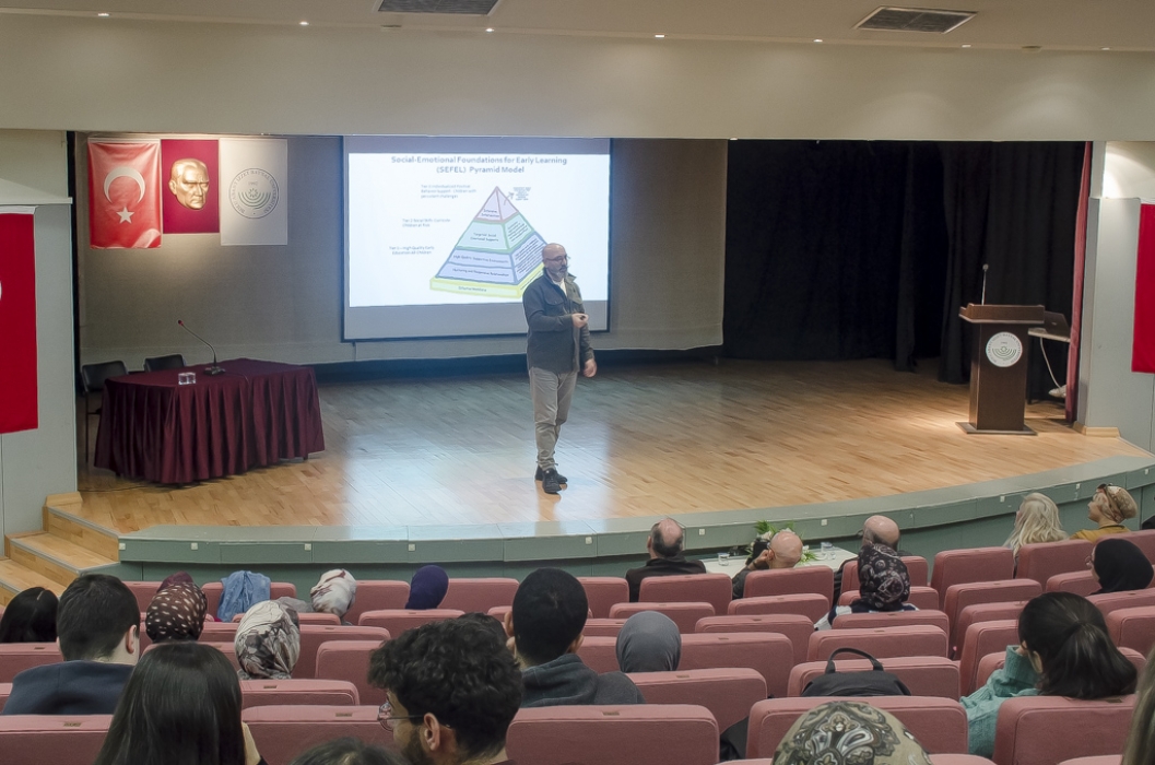 In his speech, Assoc. Prof. Dr. Sinan Kalkan provided information about the “embedded instruction” method and emphasized its importance in special education. Particularly highlighting the significance of an effective workforce, Kalkan stated that collaboration among colleagues is necessary and that receiving support strengthens the educational process. At the end of the program, the Dean of the Faculty of Education, Prof. Dr. Üzeyir Ok, presented a certificate of appreciation and flowers to Assoc. Prof. Dr. Sinan Kalkan.