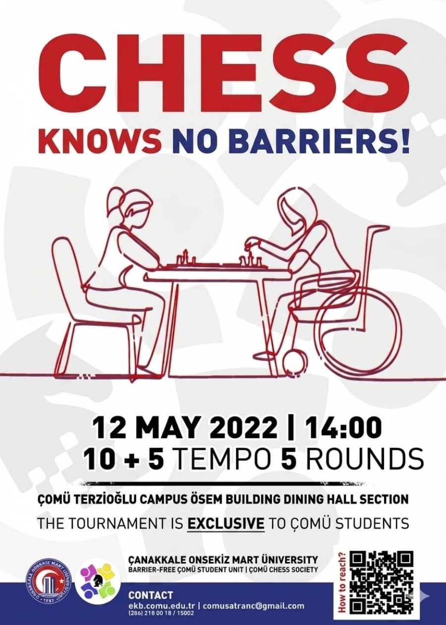 The "Chess Knows No Barriers" Tournament will be organized in cooperation with the COMU Unit for Students with Disabilities Coordination and our University's Chess Community.