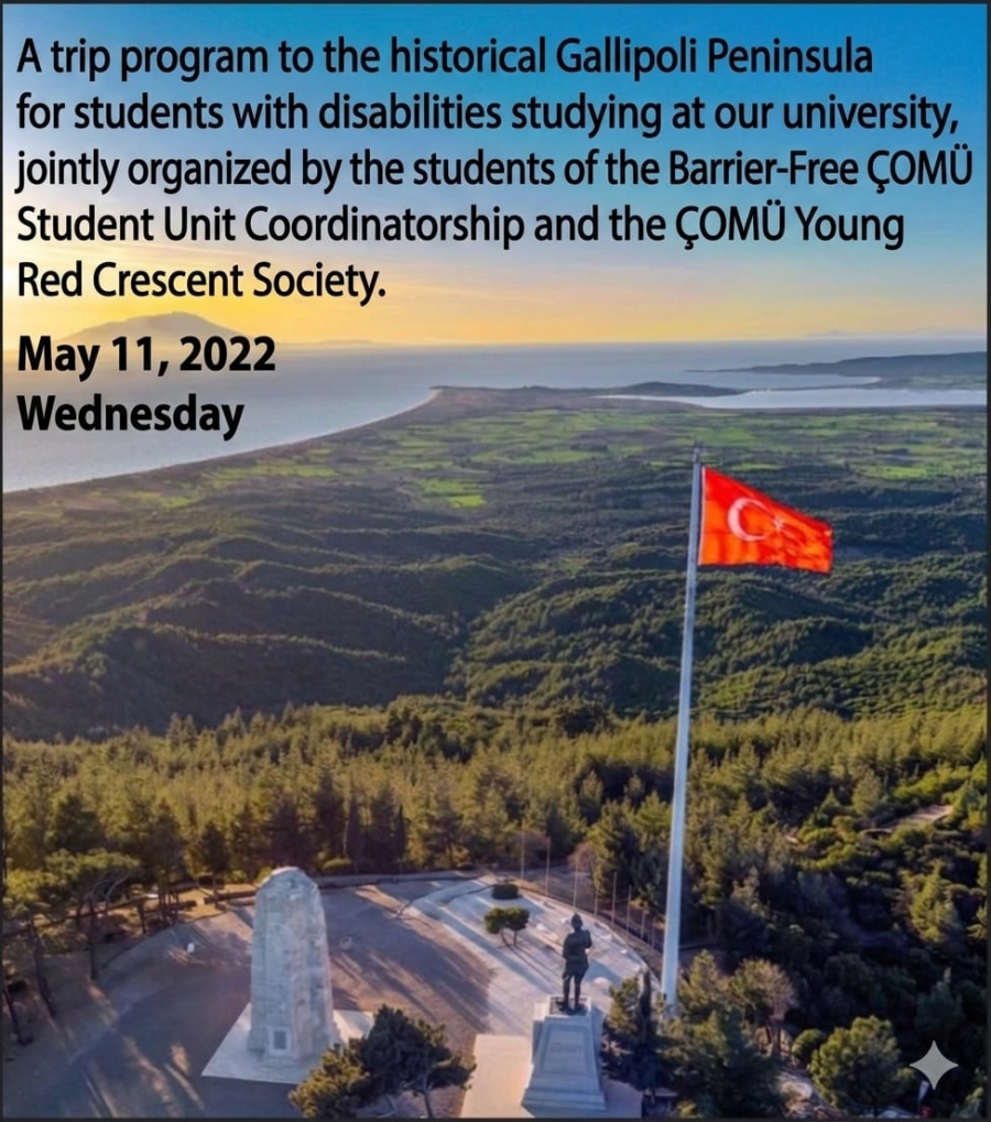 The Gallipoli Peninsula Historical Tour Program will be organized on May 11 for students with disabilities studying at our university, in cooperation with the COMU Unit for Students with Disabilities Coordination and the students of the COMU Young Red Crescent Community.